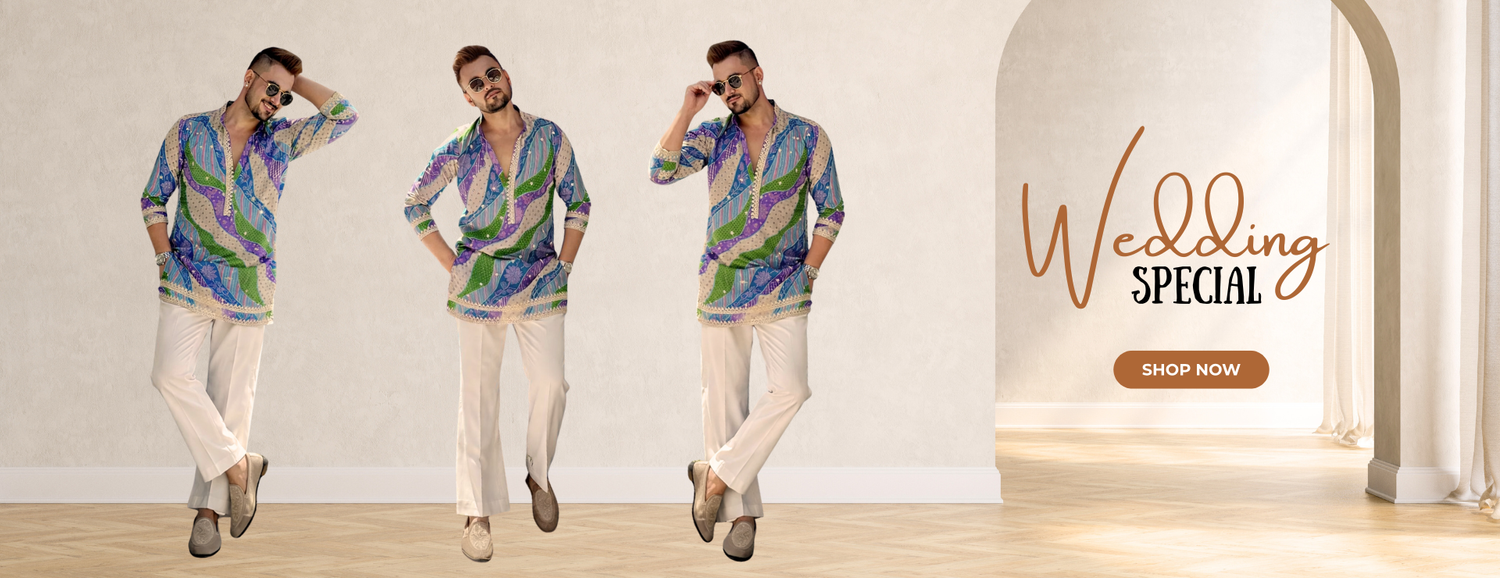REDWOOD NECK EMBROIDERED MEN'S KURTA WITH PAJAMA SET
